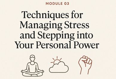 Module 03 is designed to equip clients with practical strategies to take control of their stress and fully step into their personal power. This module blends wellness, mindfulness, and these practical strategies to create lasting mental, emotional, and physical resilience. Clients will learn how to reclaim their energy, protect their peace, and confidently navigate the demands of everyday life.